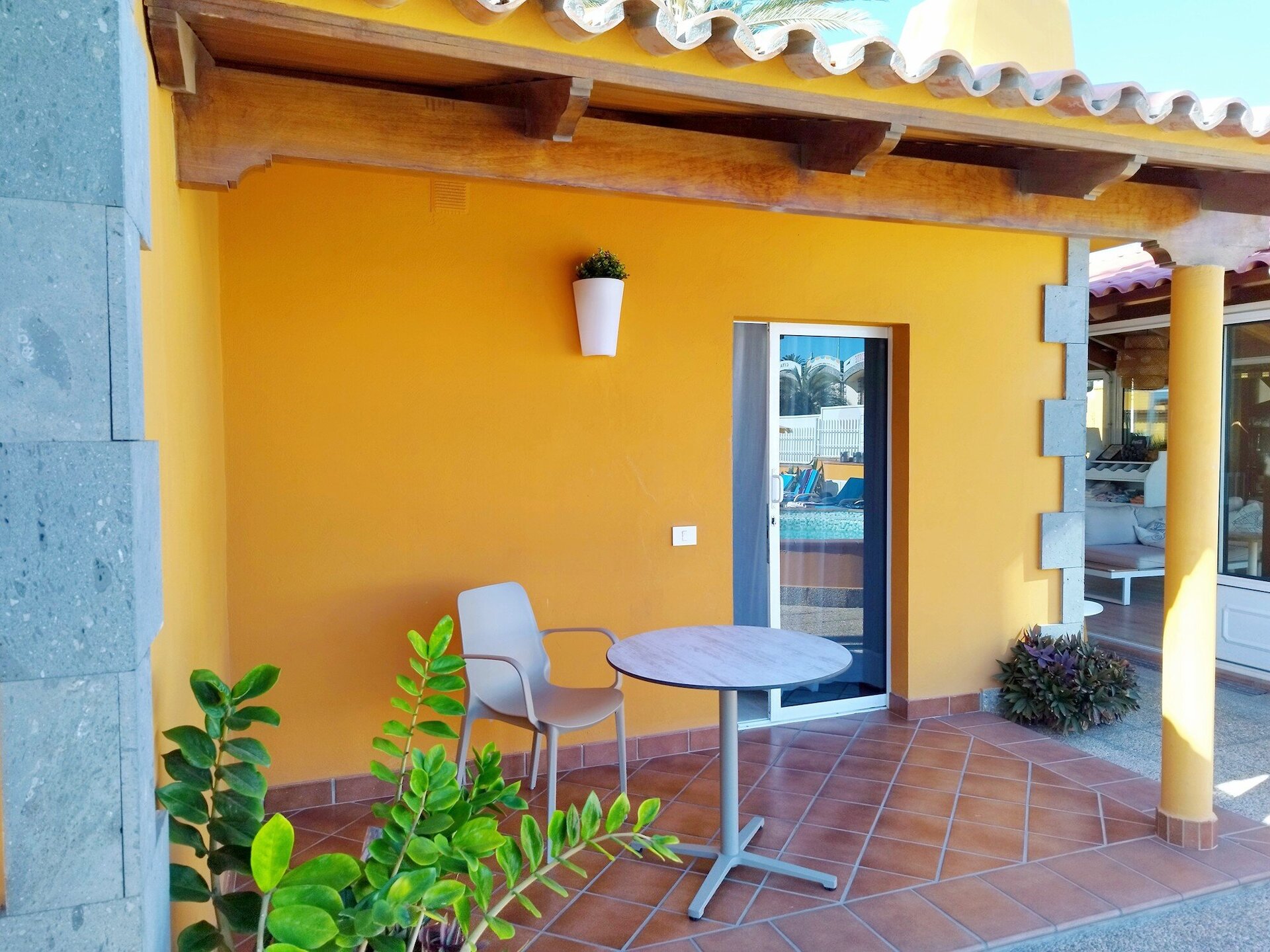 33 bungalows de un dormitorio. Cuenta con un moderno y confortable mobiliario, cocina totalmente equipada, amplio baño, dormitorio con cama king-size y salón, así como aire acondicionado, caja fuerte y dos televisores instalados en el salón y el dormitorio, conectados a los mejores canales europeos, y a dos canales porno gay/lésbico propios del establecimiento. Capacidad máxima para dos personas.